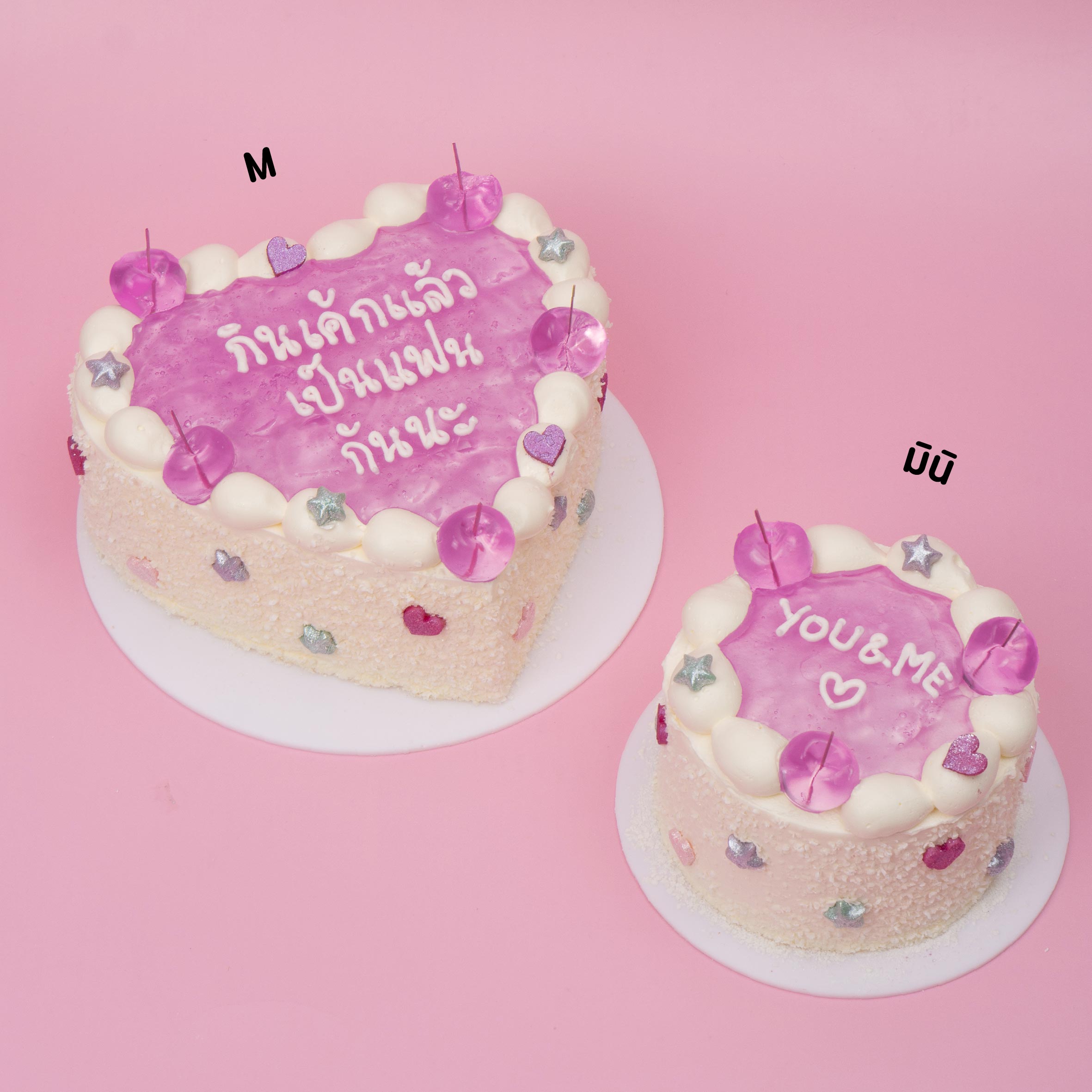เค้กชนิดนี้เขียนได้เฉพาะภาษาอังกฤษตัวพิมพ์เล็กและภาษาไทย (ตามภาพ)