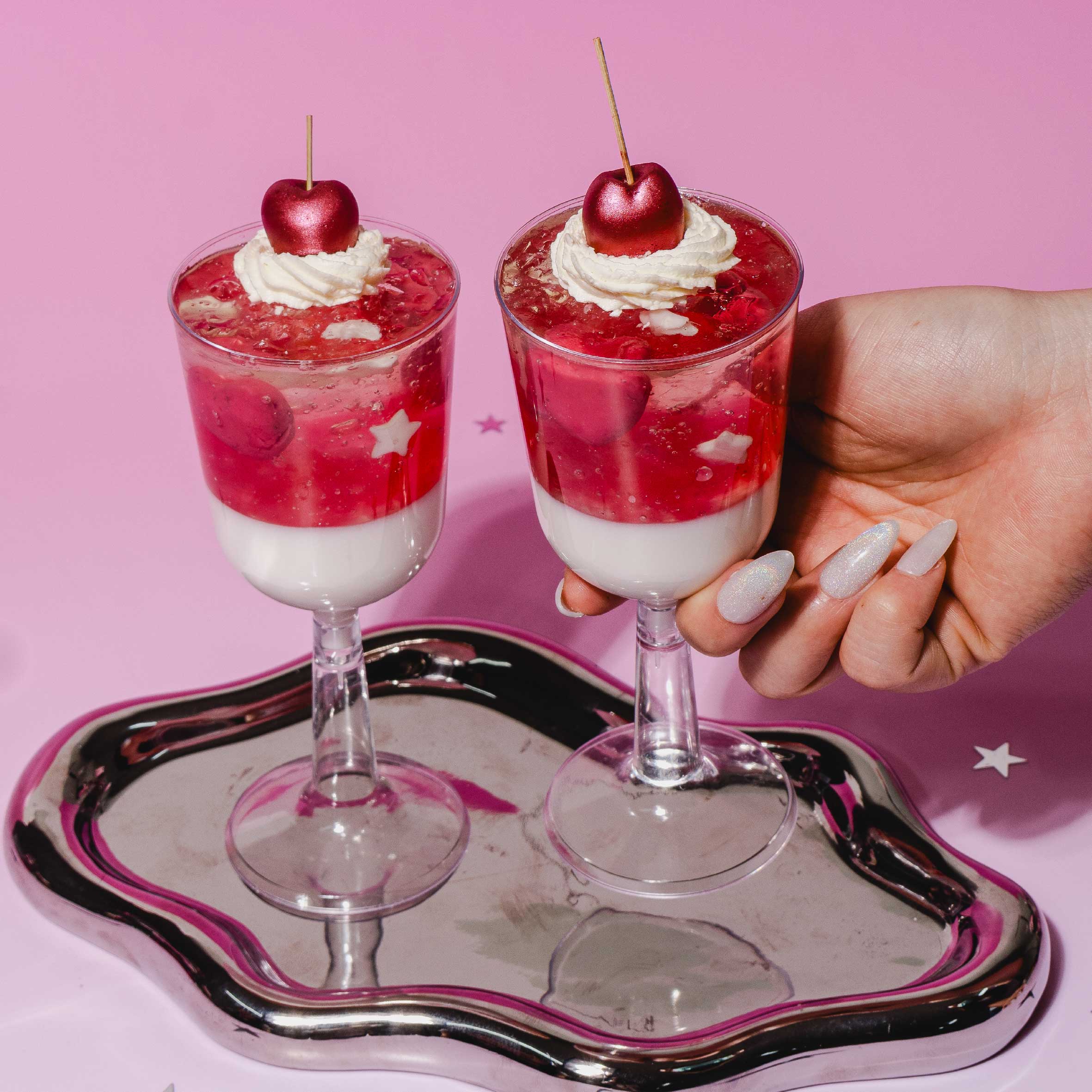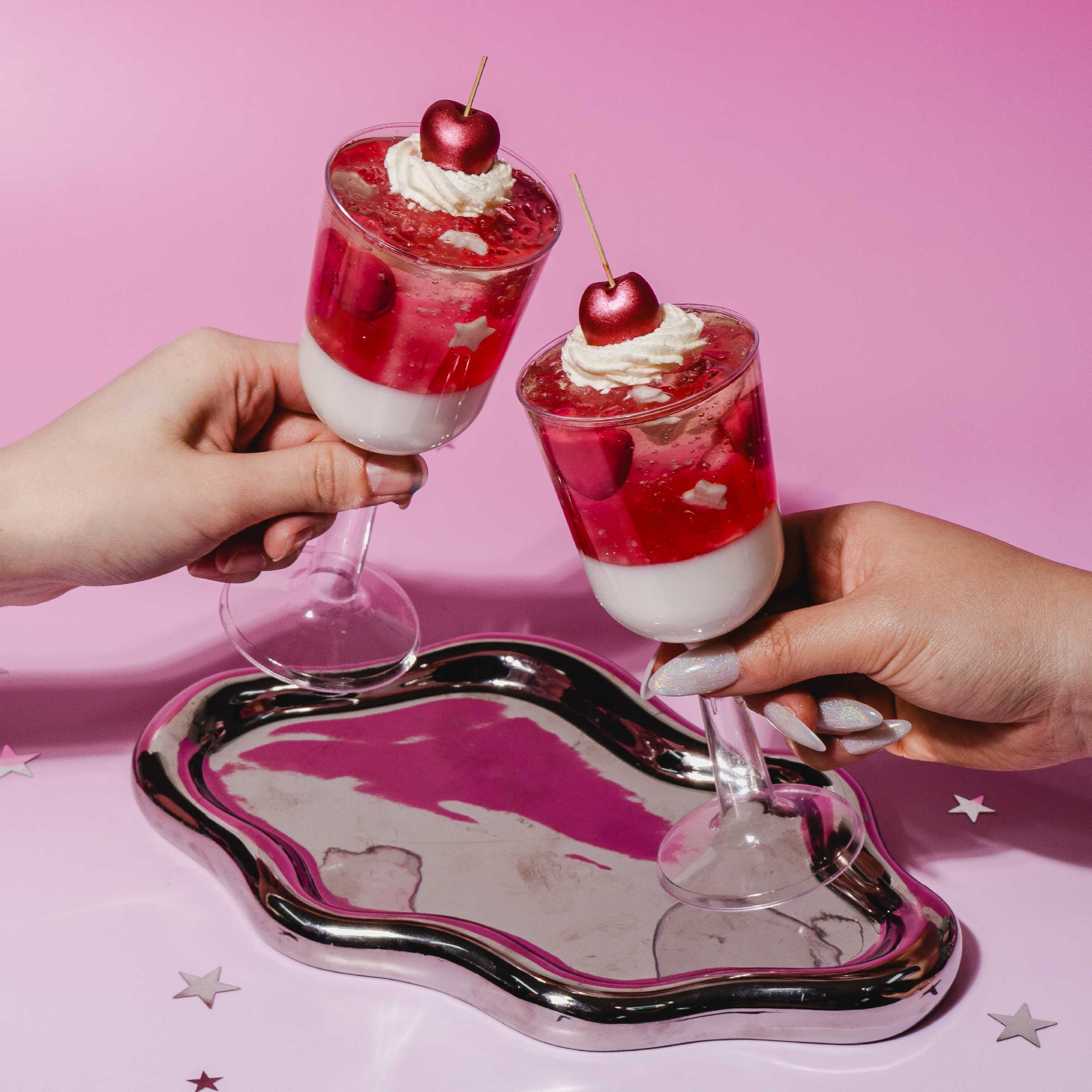 ถ้านี่ไม่ใช่เค้กแก้วไวน์ที่น่ารักสะกดใจที่สุด! เดือนแห่งความรักทั้งทีต้องมีเมนูที่ทั้งอร่อย น่ารักและติดแกลม ไปประจำโต๊ะดินเนอร์กันซะหน่อย จะให้เป็นของขวัญ หรือจัดปาร์ตี้พร้อมกันกับเพื่อนๆก็เริ่ดเลยล่ะ! ได้คอนเทนต์แบบจึ้งๆ อร่อยด้วย ด้านบนเป็นเจลลี่ลิ้นจี่เด้งๆหนึบหนับ ตกแต่งด้วยมูสครีมชีสรูปหัวใจและดาว ตามด้วยเลเยอร์ชีสเค้กหอมมันนัว ทานพร้อมกันทุกเลเยอร์คือฟินมาก และยังมาพร้อมแพ็คเกจจึ้งๆ Bowcake x Bunny Mood ยกให้เป็นของขวัญวาเลนไทน์ที่น่ารักม้าก แถมการ์ดและโบว์ทุกกล่อง พลาดไม่ได้แล้ววว!