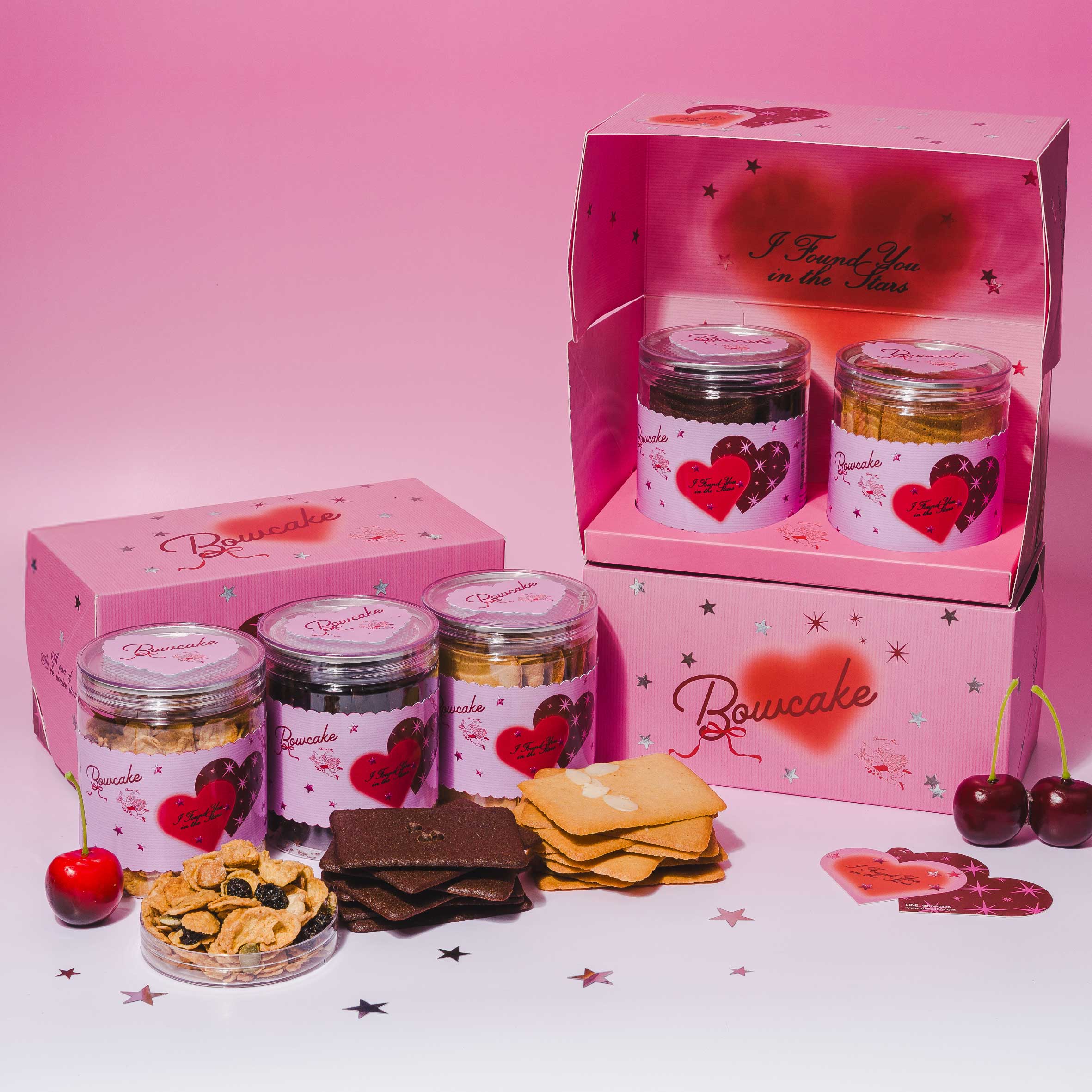 เซ็ตจับคู่ของขวัญสุดเกร๋ สแนคบัดดี้บ็อกซ์ สามารถใส่ขนมได้ 2 กระปุก คละเมนูได้ตามชอบมีทั้งหมด 3 เมนู ช็อกโกแลตบราวนี่กรอบ คริสปี้อัลมอนด์บิสกิต และคอร์นเฟลคคาราเมล มาพร้อมกล่องวาเลนไทน์ Special Collaboration สุดจึ้ง Bowcake x Bunny Mood กับคอลเลคชั่น I Found You in the Stars อร่อย ติดแกรม ถ่ายรูปสวยทุกมุม! สินค้ามีจำนวนจำกัด ห้ามพลาดเลยน้า :)